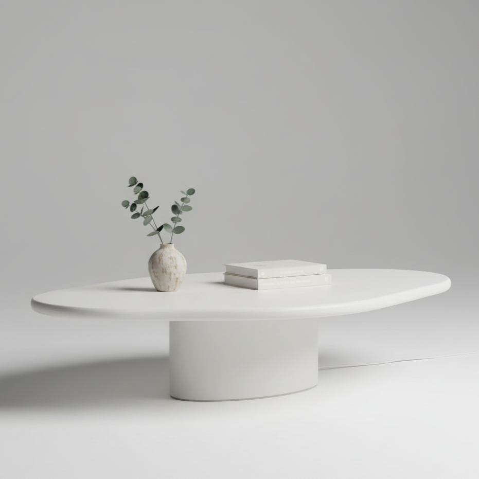 Experience the ultimate modern touch with our Organic Coffee Table. Made with durable fiber glass, this table is both functional and stylish. Elevate your space with this addition and bring a touch of luxury to your home.