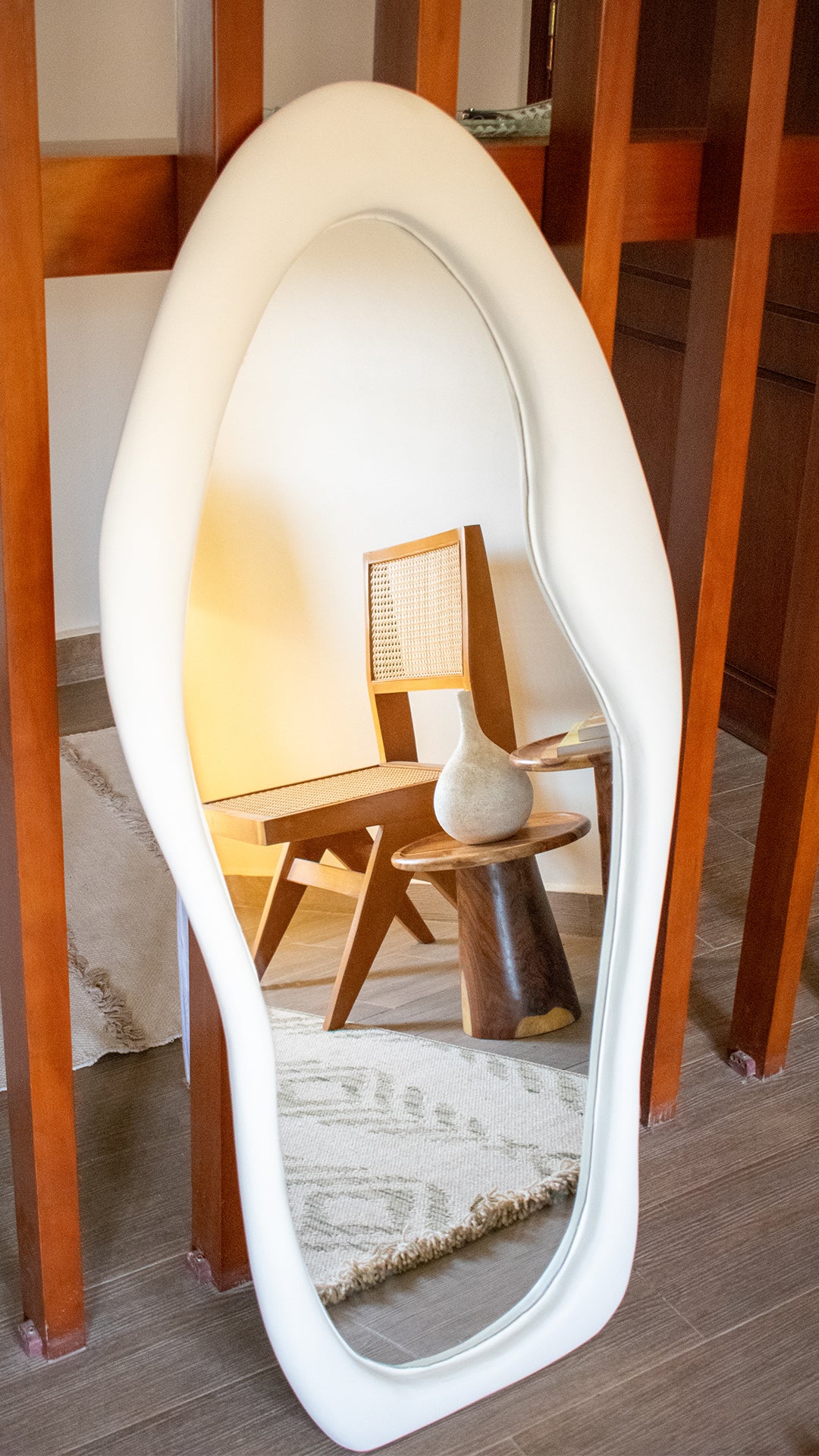 The Organic Mirror is crafted with fiber glass and provides a unique, organic shape. Its 130cm height creates a dramatic statement piece in any space. Sophisticated yet modern, this mirror will fit perfectly in both contemporary and traditional interior décor.